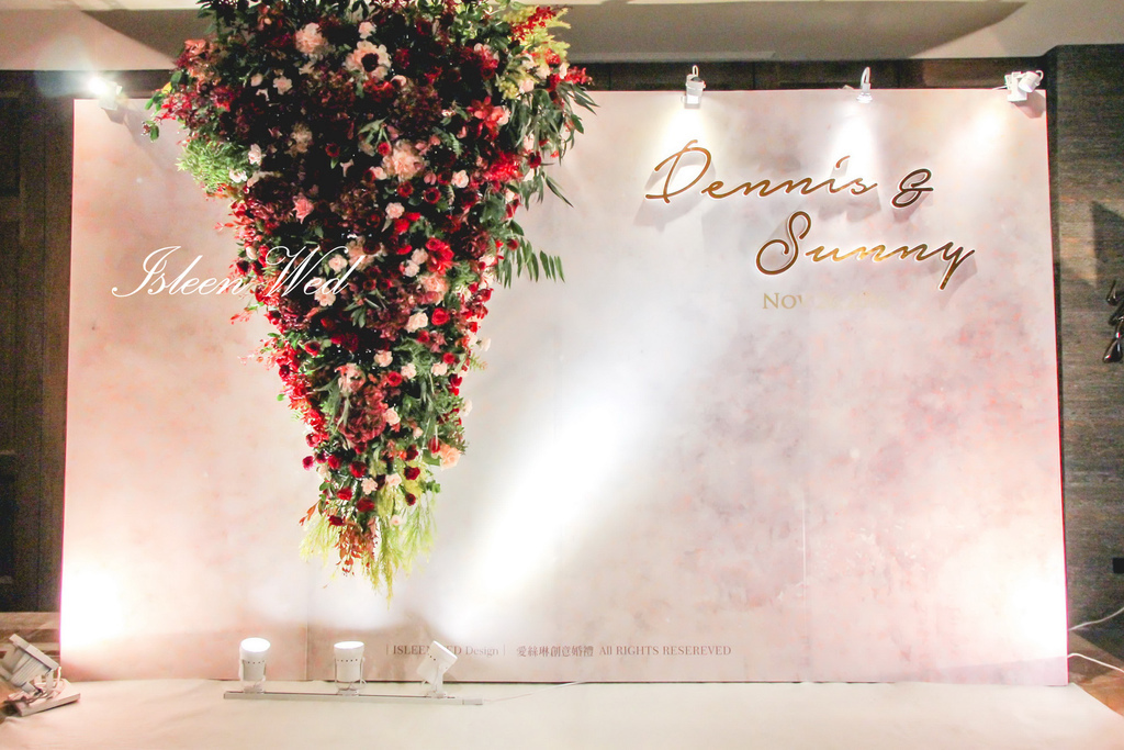 簡單乾淨的異材底紋,以空中花藝的方式為這次主題重點
