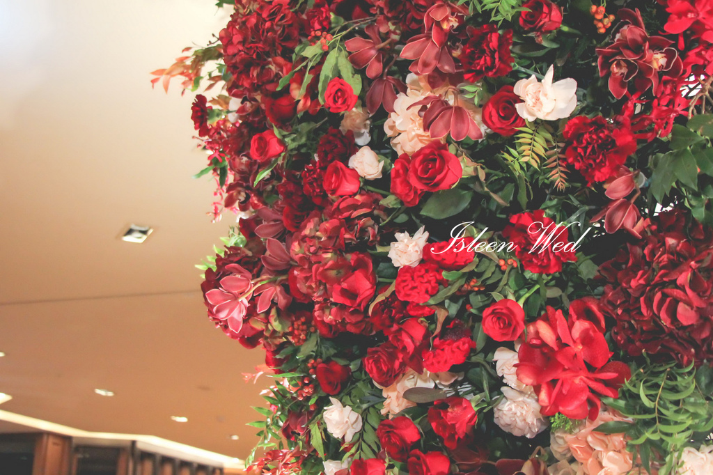以最極簡的方式呈現,帶著喜氣的紅色系花藝大氣不失典雅